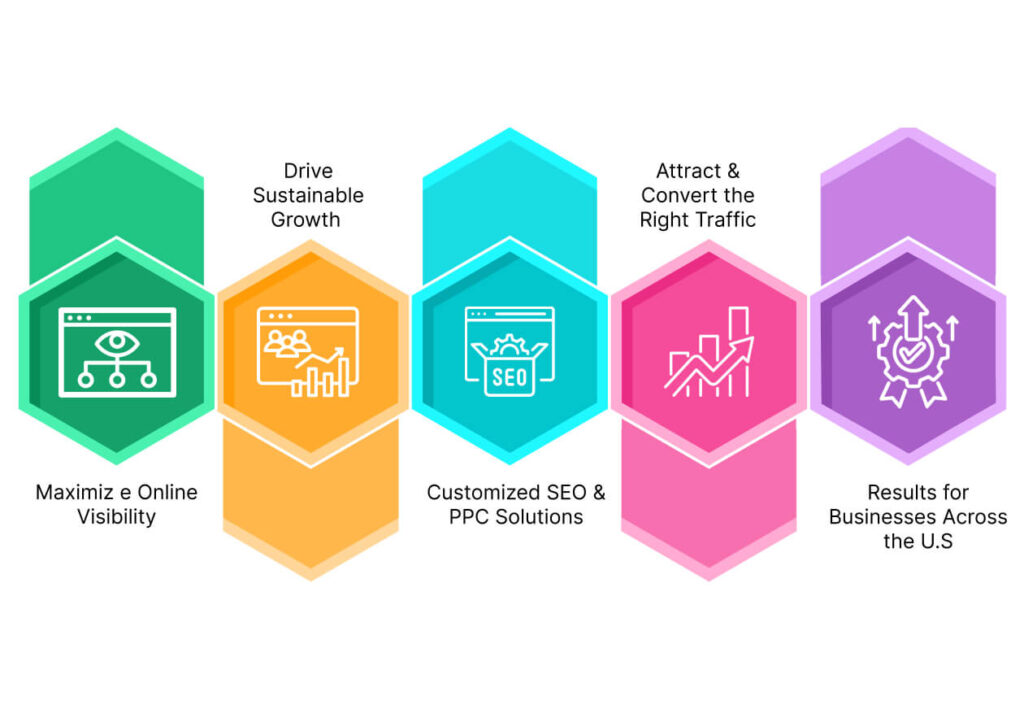 In the times when online visibility is on it’s peak, and positioning your brand as a top business is of utmost importance, showing up on search engines is not just an option, but it has become mandatory for keeping your brand relevant among your users or target audience to gain long-term SEO growth , Effective SEO campaign is a brand’s digital powerhouse, guiding it to the success that lies ahead for U.S. businesses. At Web Venturez we provide top SEO Services for U.S.A, We listen to your needs and develop a custom SEO Marketing or Pay-Per-Click (PPC) strategy to help reach your desired audience and drive targeted traffic to your site. Our SEO Services for U.S. businesses are created for satisfaction of both owners and their audience.
